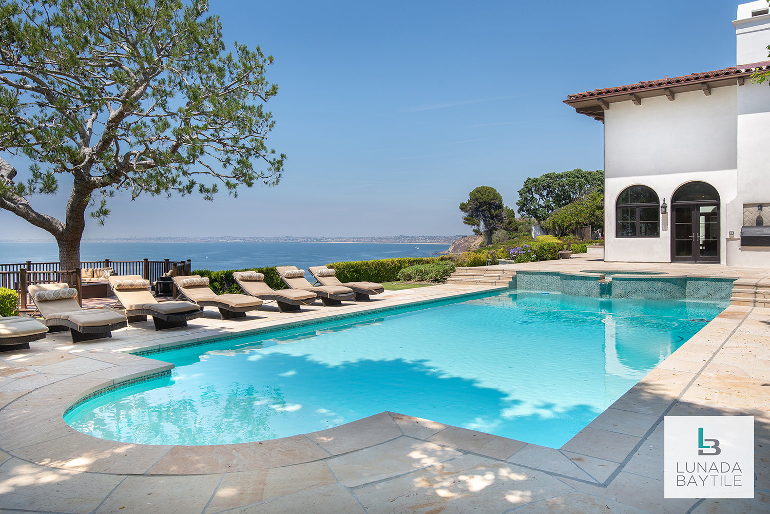 Pool waterline in Tozen's Japonaise pattern in Erbium Natural.