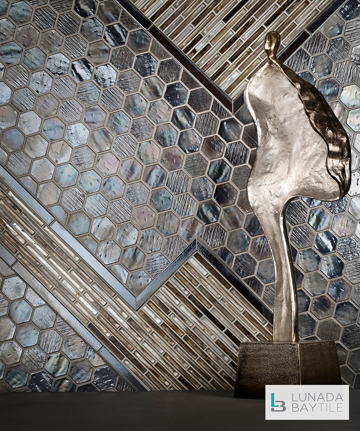 The Shinju Cambric Hex pattern in Olympia create an artistic, textured environment.