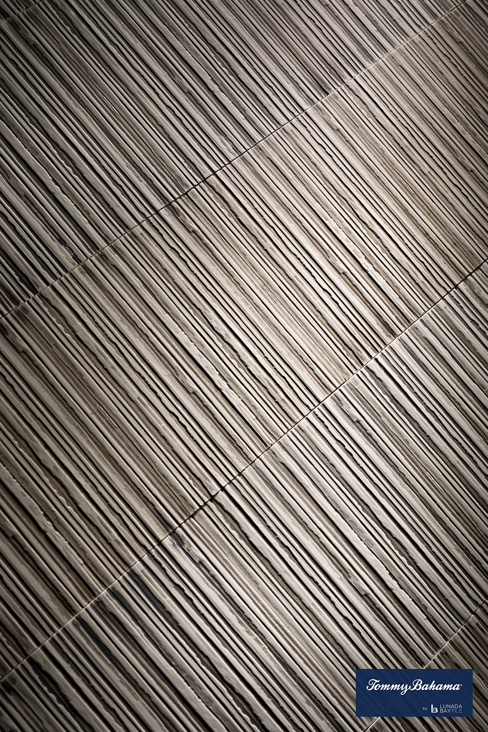 Reinterpreting Tommy Bahama's most iconic textile prints, Kapa architectural concrete tiles are inspired by elements of the exotic: sumptuous tropical fabrics, lush palm fronds, and waves lapping along a quiet shoreline. The dimensional surfaces add subtle, luxe texture to walls and coordinate with Tommy Bahama Glass Blends and other Lunada Bay Tile glass collections.