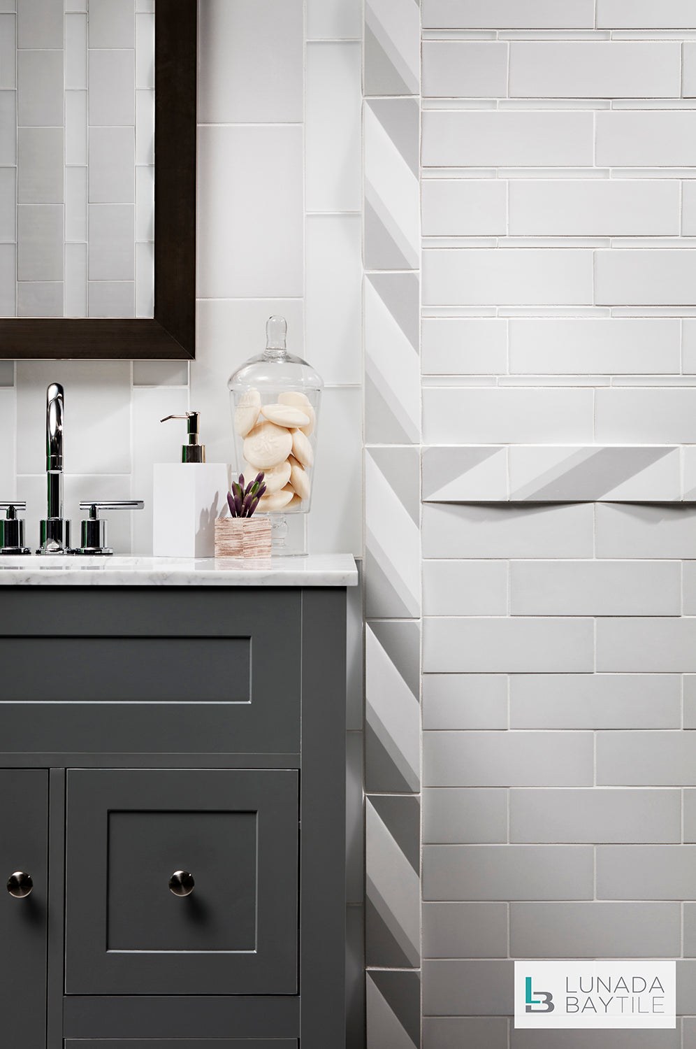 Inspiration Gallery / コンターズ シー ソルト ウォール Photo Credit: Zack Benson Contourz コンターズ シー ソルト ウォール Bathroom バスルームの壁に輪郭のコンクリート タイル。パターン: Zen Break A および 3x9。色: シーソルト。 Find a showroom Size Name Color Sea Salt View Product 前へ次