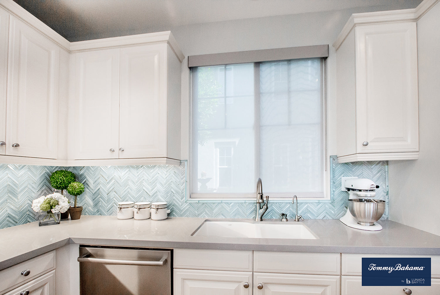 トミー バハマ グラス ブレンド ジグ & ザグ ココス キーリングは、素晴らしいキッチン バックスプラッシュを生み出します。